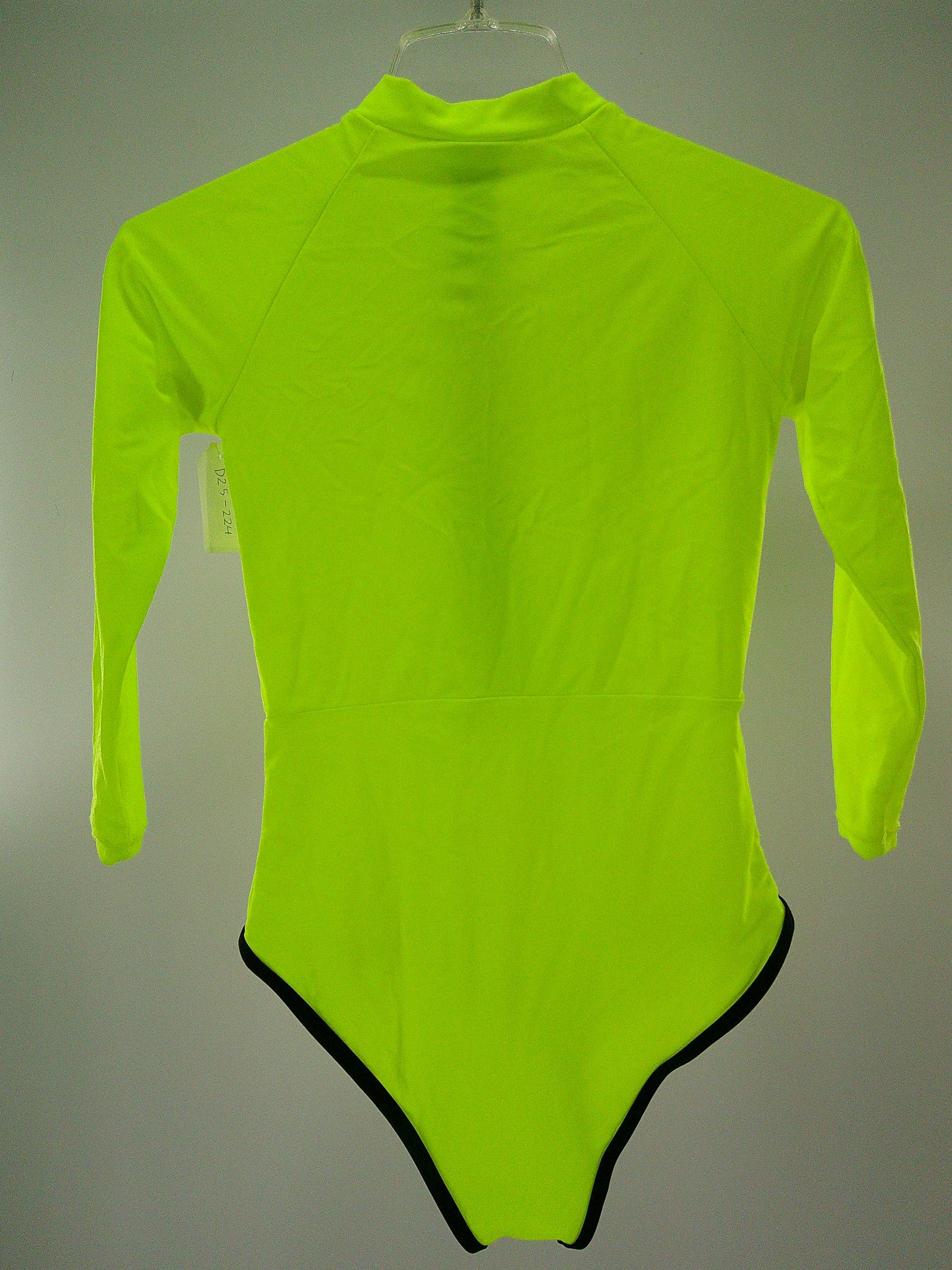 Neon Yellow/Green Long Sleeve leotard with zip front and black Trim