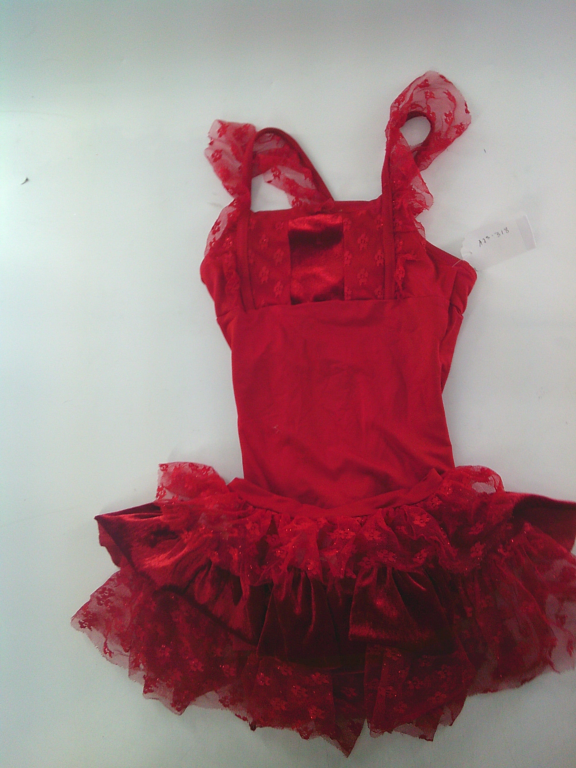 Red Flutter Sleeve Leotard with FLower glitter lace accents and velvet insert at the bust - Matching Skirt included