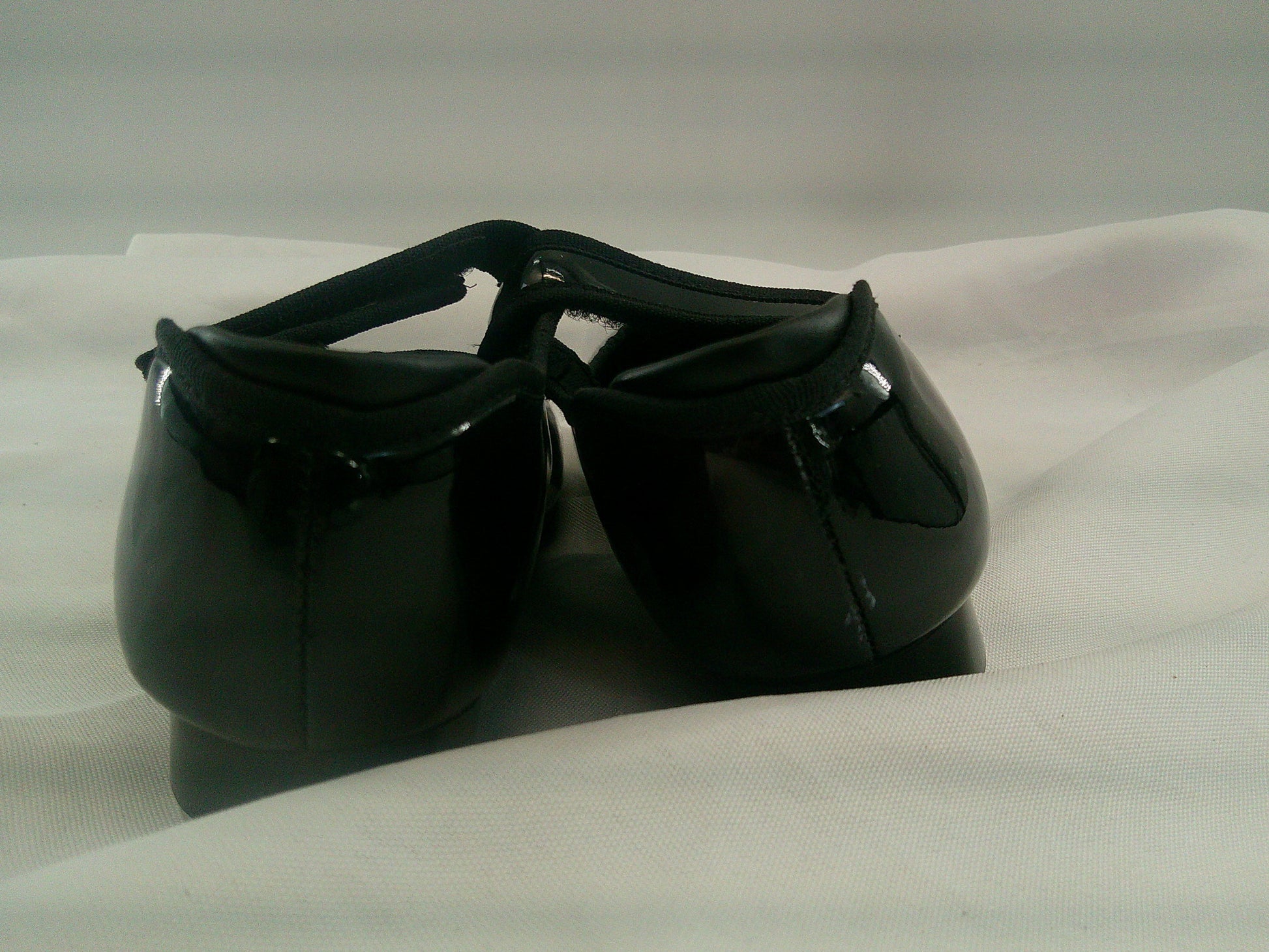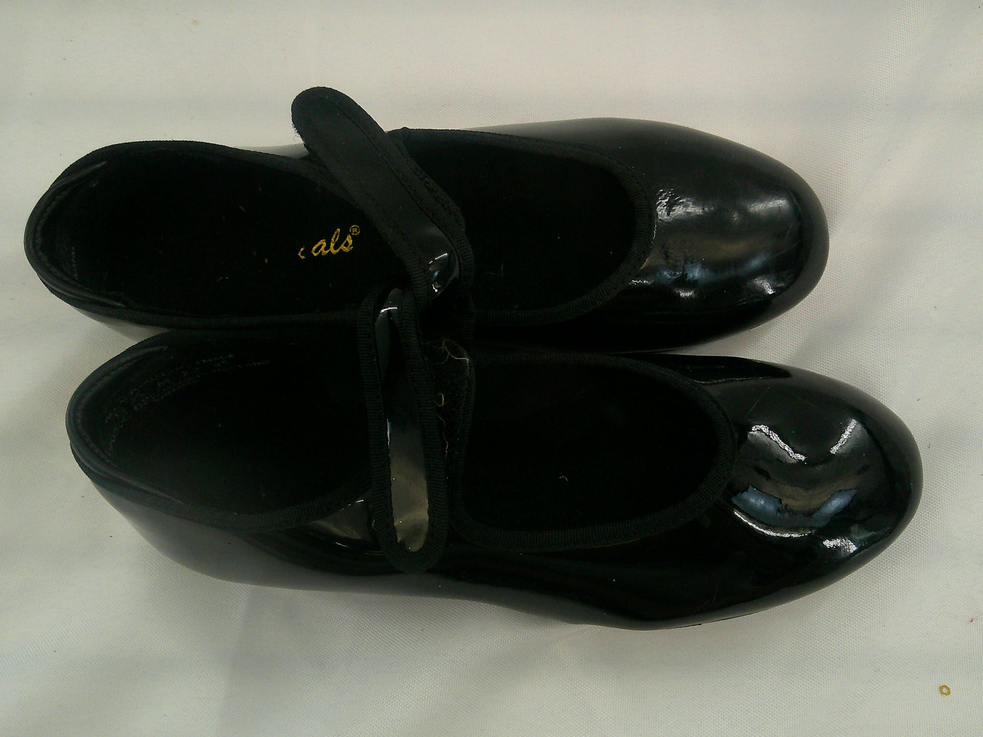 "Mary Jane" style tap shoe features a secure, easy to use hook and loop strap closure, a rubber sole pad for traction and stability, screw-in heel taps, a padded sole for comfort, and a padded heel collar to help prevent blisters and injuries to the Achilles tendon. The black patent features a PVC upper while the tan features a matte PU upper.