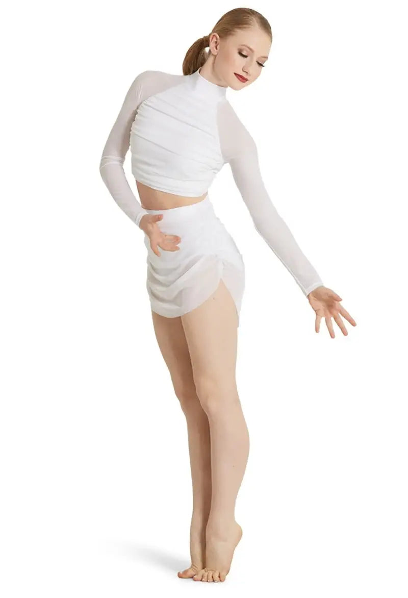 Features: Front Lined Crop Top Long Mesh Sleeves and keyhole back - Skirt NOT included