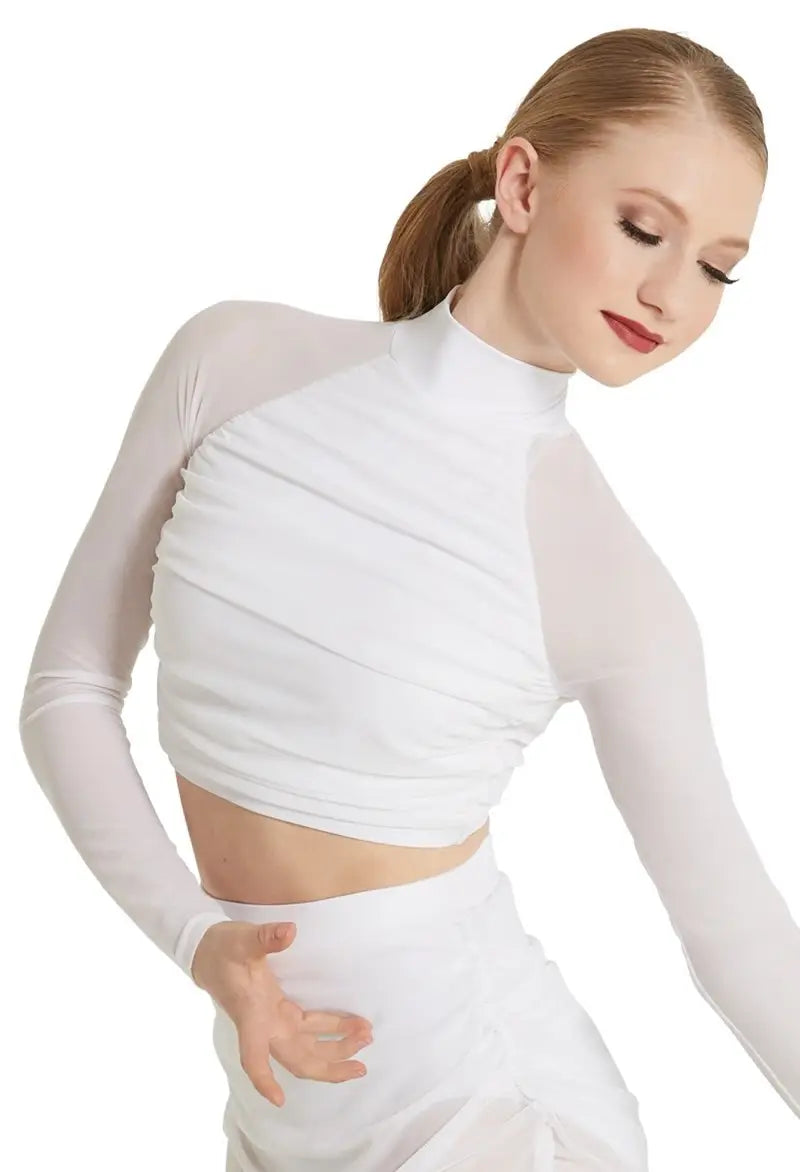Pre-Owned Top Balera MT11446 Small Adult White Long Sleeve Ruched Contemporary