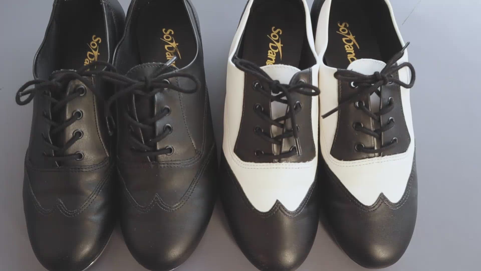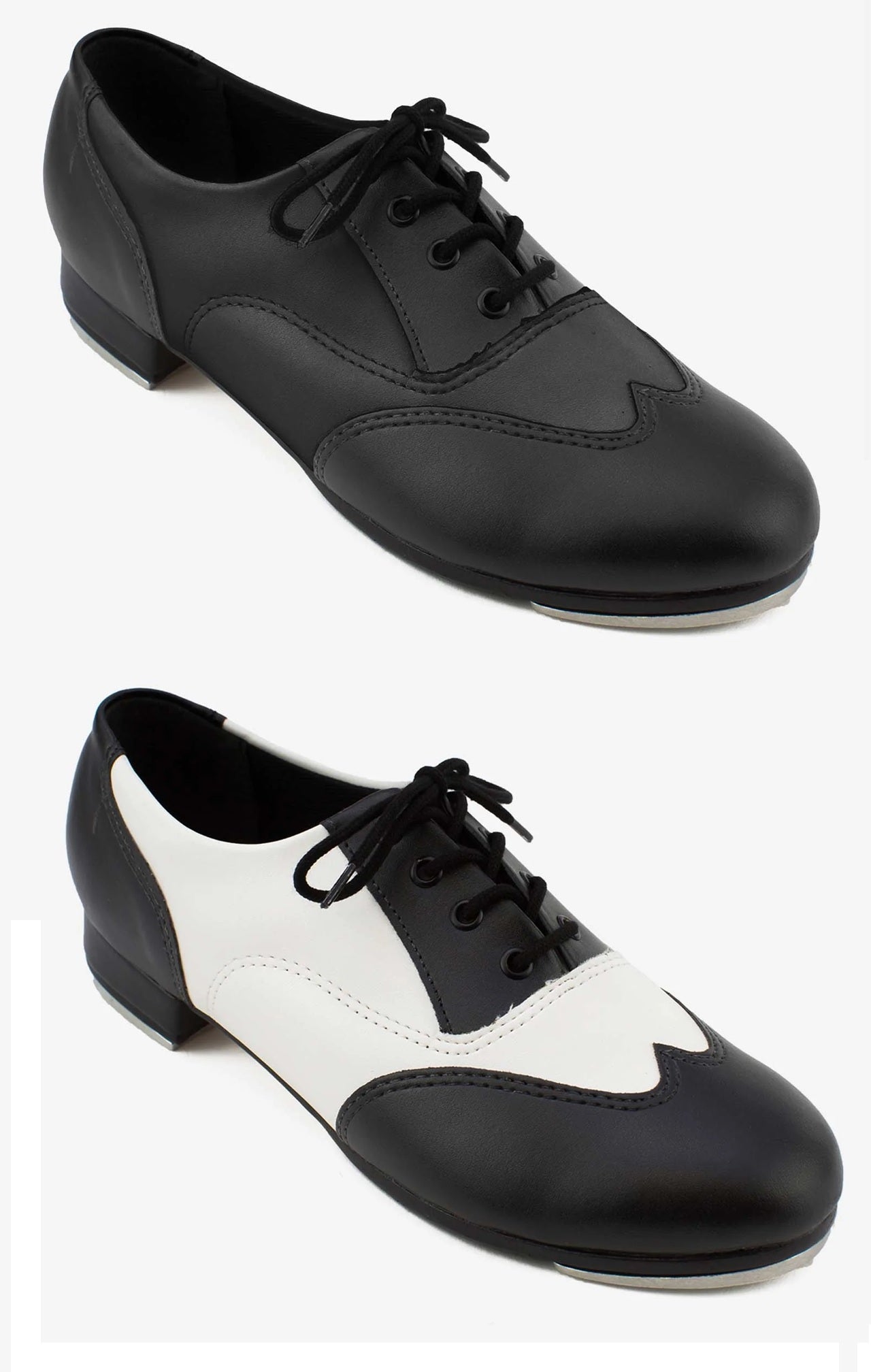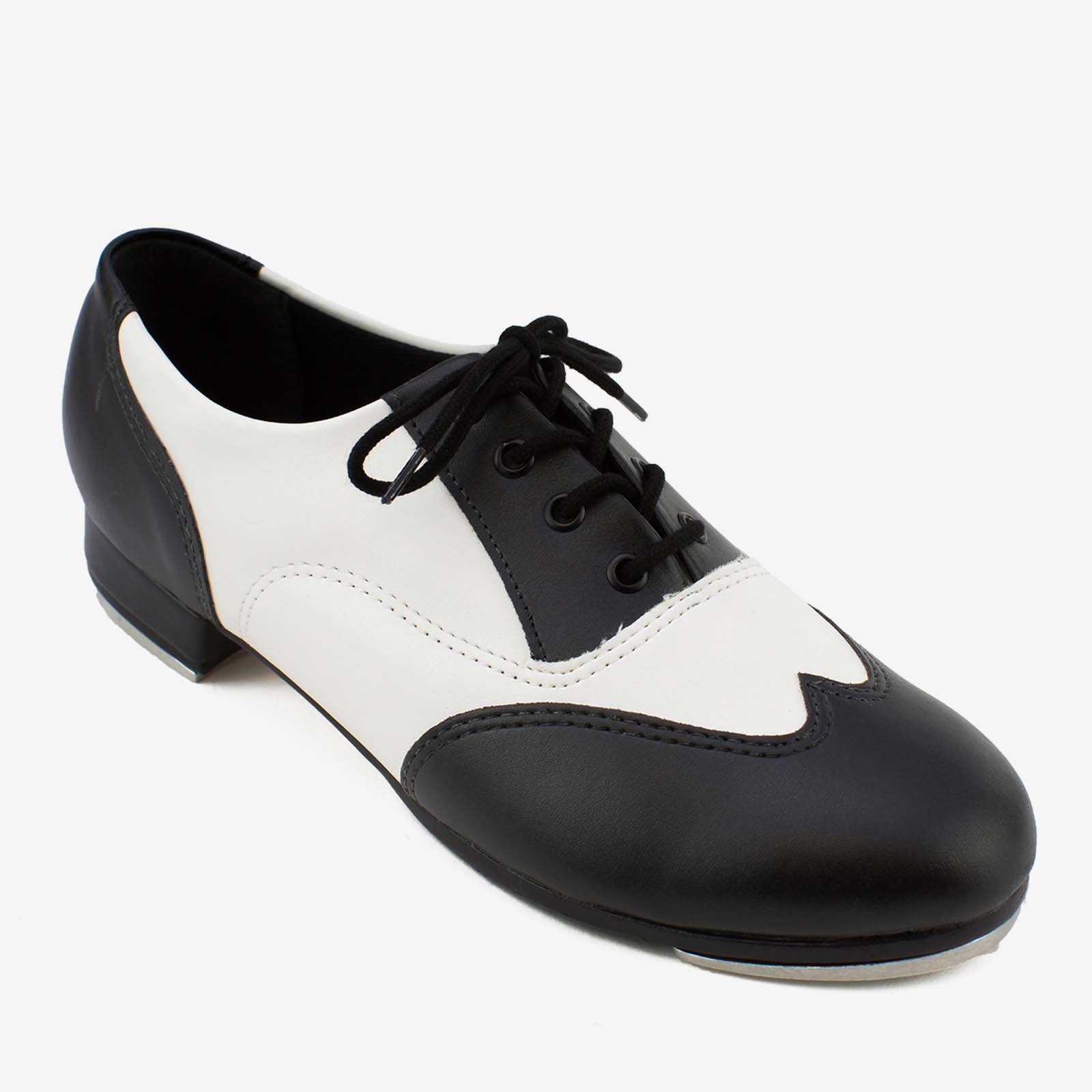 Put some spring in your step with our TA20. Chic upper design offered in 2 colors: solid (black) or two-tone (black and white). The Trent has a full leather sole with attached rubber pads. Cushioned lining and screwed on taps for deep sound quality.